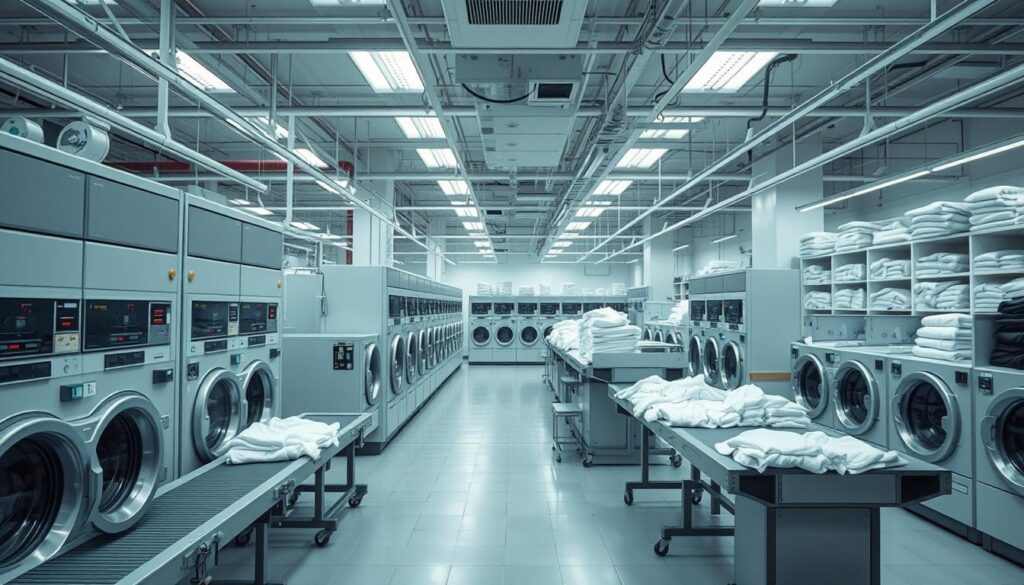 洗濯機の自動プログラムが作業負担を軽減。洗剤の計量から投入までを完全自動化し、ボタン1つで全工程が完了します。ある従業員は「間違いが心配だった計量作業から解放された」と語ります。