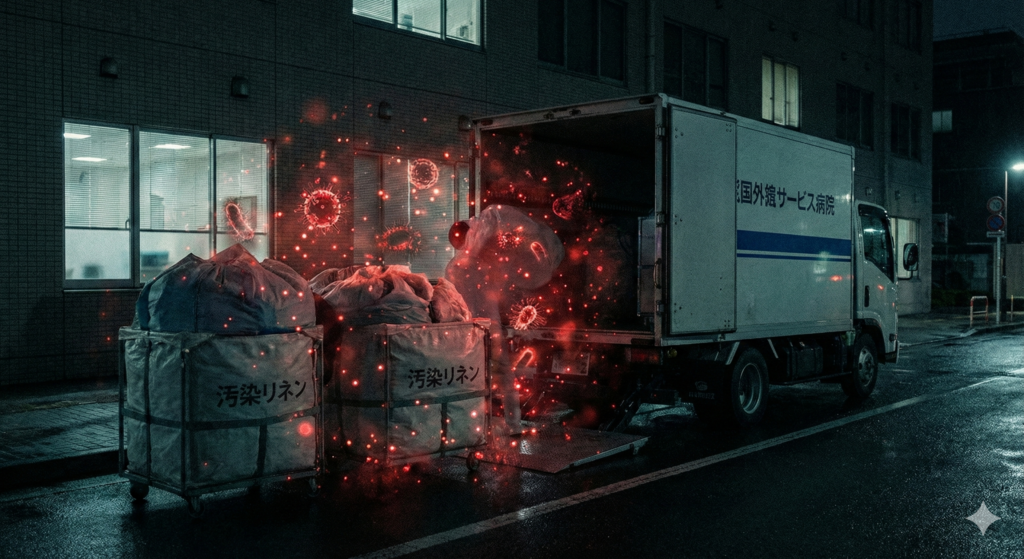 外部委託では、汚染リネンが施設外に運ばれてから洗浄されるまでのプロセスが把握できません。輸送中の二次汚染リスクや、複数施設のリネンが同じ工場で処理される際の交差汚染の可能性は、感染管理上の大きな懸念材料です。