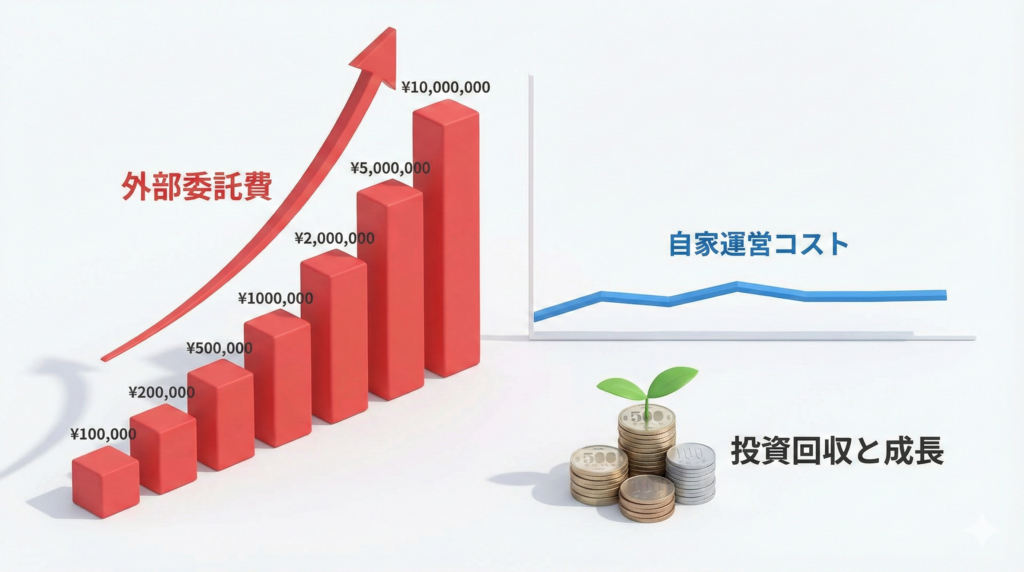 - 外部委託との詳細なコスト比較と投資回収シミュレーション